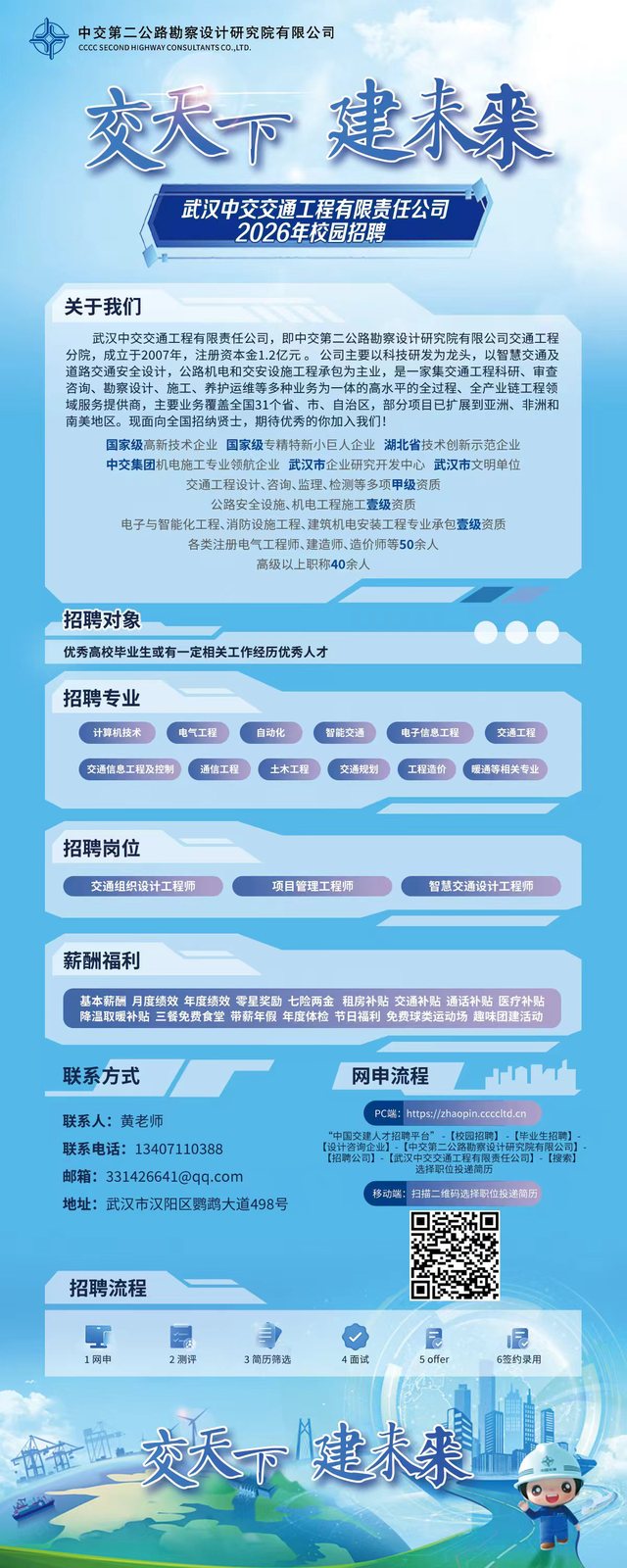 武汉中交交通工程有限责任公司2026年校园招聘(网申通道)