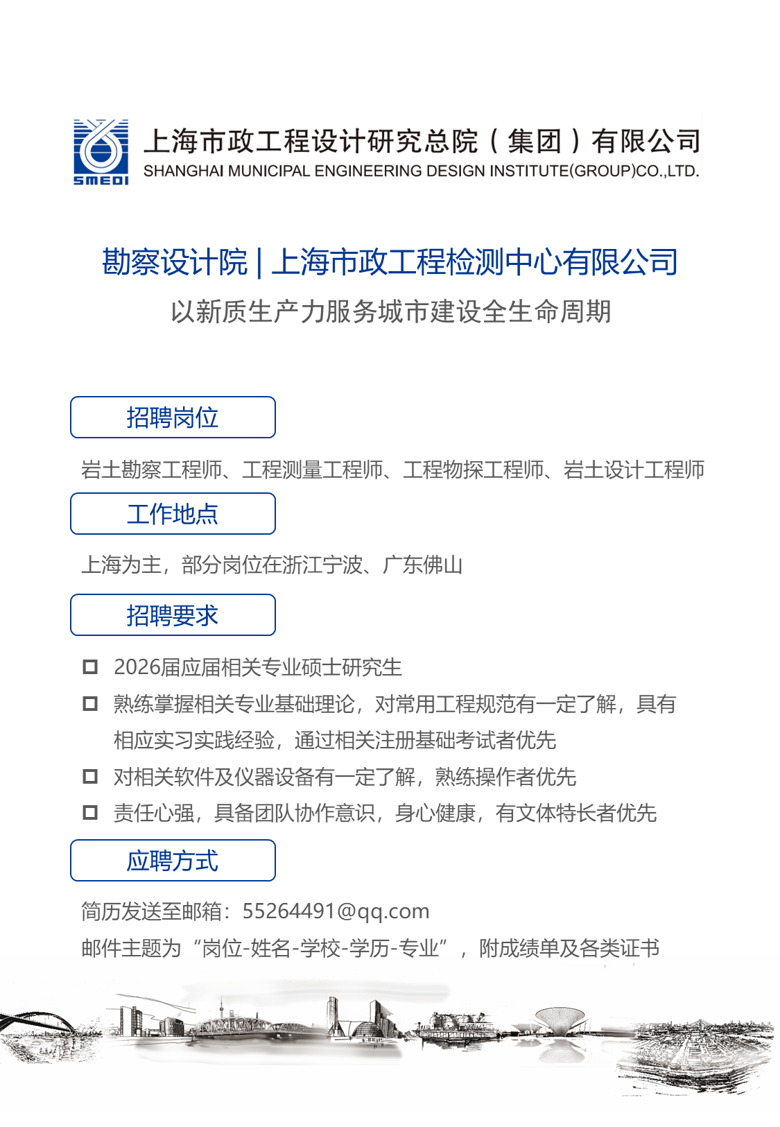 上海市政工程设计研究总院(集团)有限公司(简历发送至邮箱)